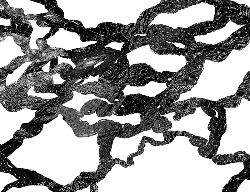 En résidence à la Cité des Électriciens en février, le plasticien Philippe Baudelocque avait essaimé ses célèbres Entrelacs dessinés à la craie sur les murs du coron.